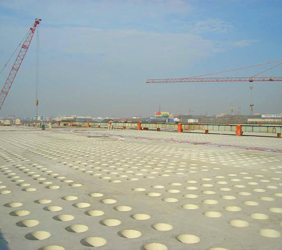 結(jié)構(gòu)留孔:作為模板,澆筑混凝土后形成均勻圓形孔洞,構(gòu)成奇氏板(華夫板) 結(jié)構(gòu)。